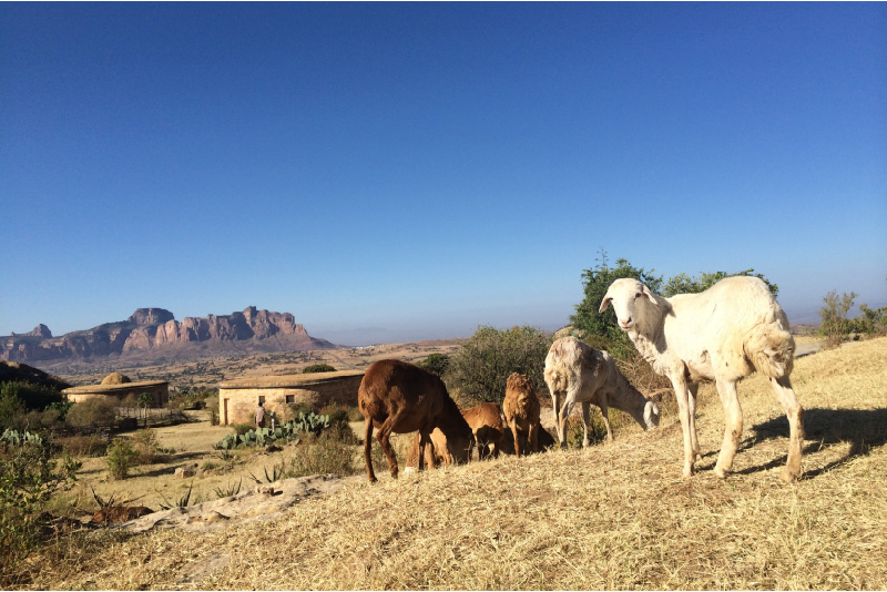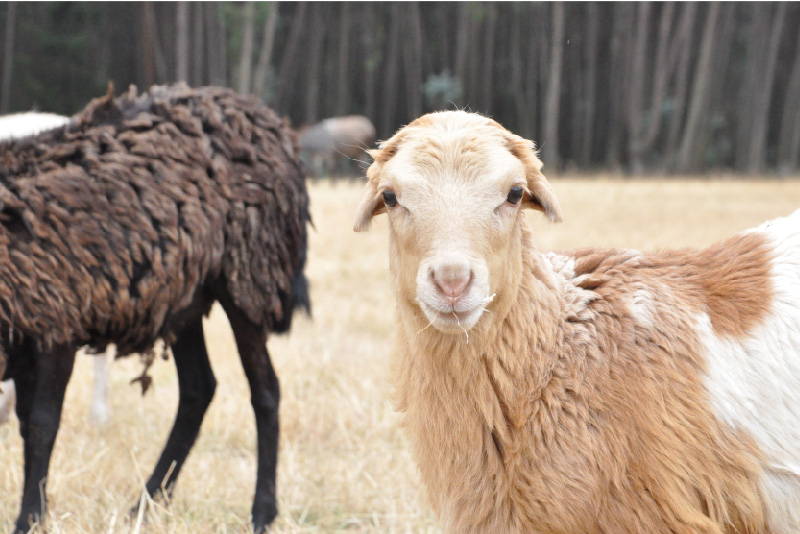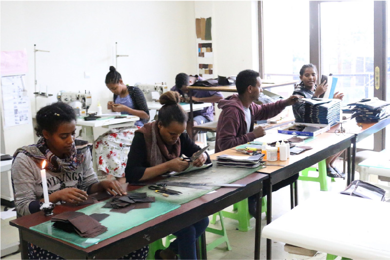 エチオピアのシープ革の魅力を伝えている鮫島さん。