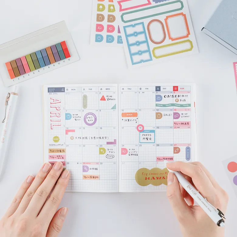 月間ページや1日ページに貼って予定を目立たせたり、飾ったりすることができるシール。