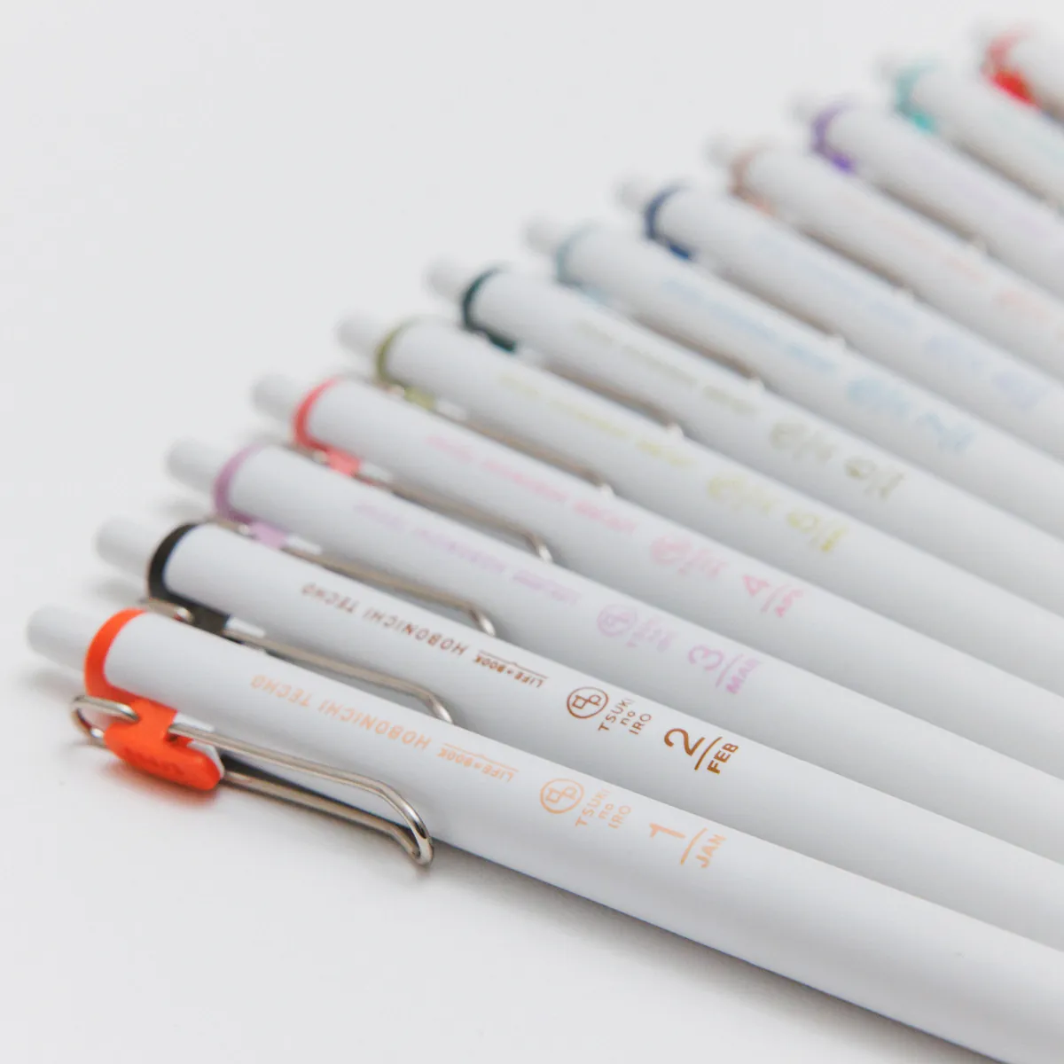 ワンからほぼ日手帳本体の印刷色に合わせた12本を選びました。