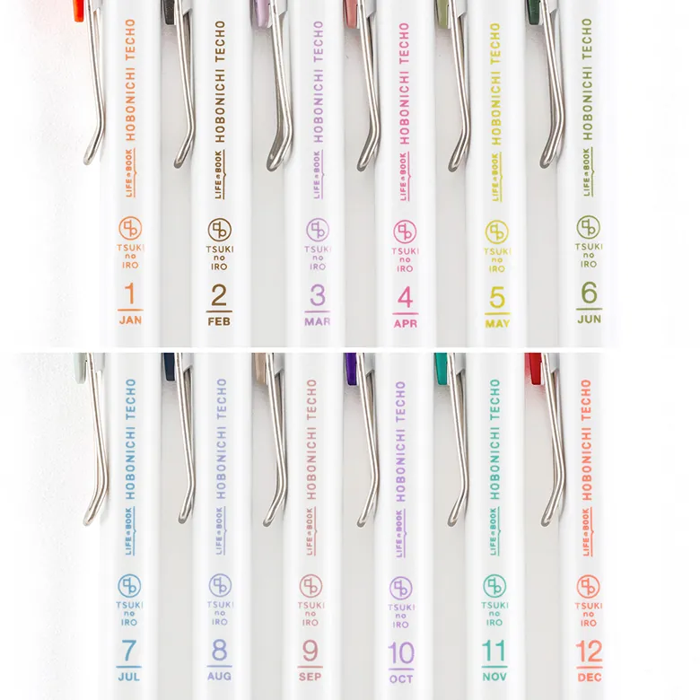 ワンからほぼ日手帳本体の印刷色に合わせた12本を選びました。