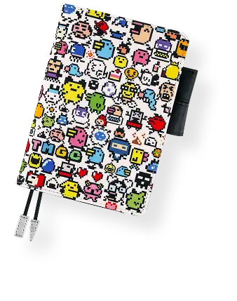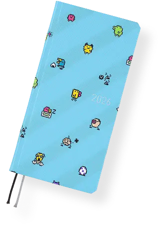たまごっちがにぎやかに並ぶほぼ日手帳カバーに、ユニークなポーズが愛らしい週間手帳のweeksができました。おまけのクリアシールもキュート!