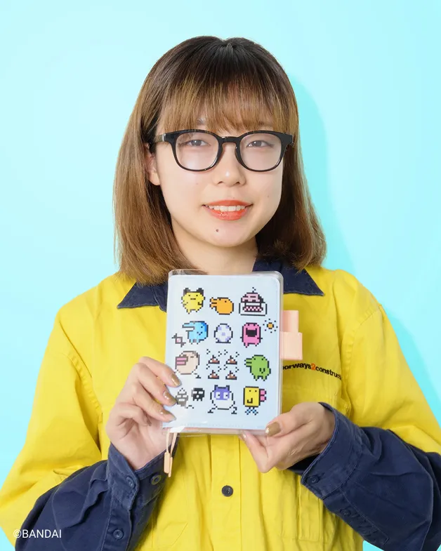 あえて本体もカバーも「柄あり」に挑戦。ドット絵のたまごっちが重なるデザインが可愛くて、見るたびにテンションが上がります!