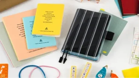 A6サイズとA5サイズがあり、それぞれのサイズのカバーといっしょに使うことができます。