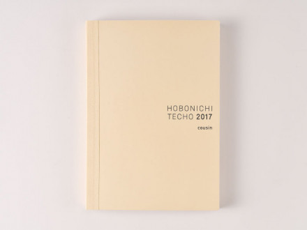 The front of the planner book is made of strong card stock with a soft ivory hue, and features the label “HOBONICHI TECHO 2017 cousin,” printed in gray letters.