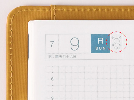 The date of the old Japanese lunisolar calendar is also included under the day's date. This calendar was used in Japan until 1873, when Japan adopted the universal Gregorian calendar. Some days in this lunisolar calendar are specified as standard days signifying the changing of the seasons. We've also included solar terms based on this ancient calendar. We've also included solar terms based on this ancient calendar.