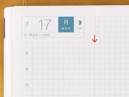 There's also something we call the "Secret Line": a vertical line that runs parallel along the right of the timetable. This separates the schedule on the left from the open memo pad on the right. We've printed it lightly enough that you can ignore it when using the page as a whole.