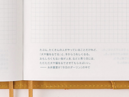 The Japanese planners have slightly smaller graph paper than the English version. The 3.7 millimeter graph paper was the result of extensive tests for an ideal size for writing in Japanese, although the size also allows comfortable writing in any language. Feel free to write along the lines of a single line or two – or just ignore the lines altogether.