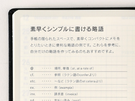 At the top of each notebook page is a list of abbreviations often used for shorthand note-taking.