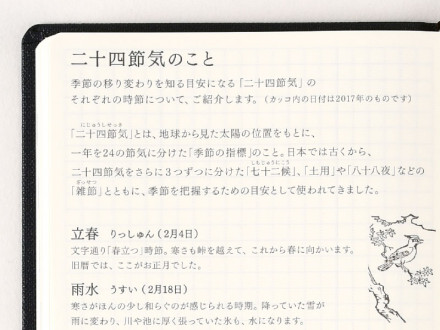 This section explains the names and origins of solar terms that make up the 24 points in traditional East Asian lunisolar calendars. These include well-known days such as the start of spring and the winter solstice.