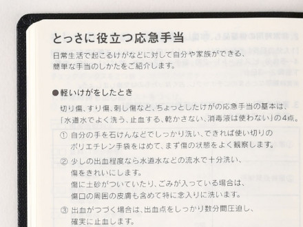 This page contains a checklist of items to have ready in case of an emergency. There is also a space to list nearby evacuation zones (common in Japan), emergency contact information and topics discussed between family and friends.