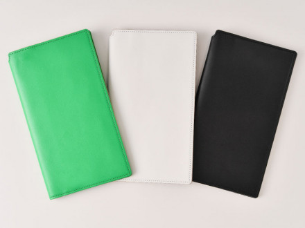 These covers by B Jirushi Yoshida are reminiscent of a sandwich and designed to hold a large number of writing utensils and stationary to act as a sort of portable workstation. The covers are available in black, orange, and blue. The 2017-edition cover adds a rubber band to hold the cover shut.