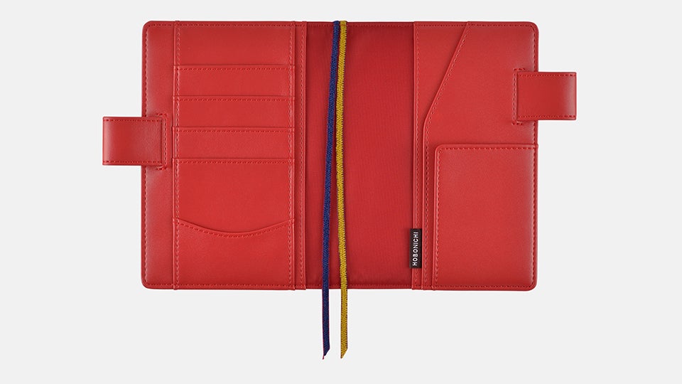 The pen holder is designed to perfectly fit the 12.2mm (0.48”) diameter Jetstream pen offered as a free bonus gift with select Japanese-version Hobonichi Web Shop products. Pens with certain shapes and materials may be difficult to pull through the holder. The holder can fit pens up to 13.5mm (0.53”) in diameter.