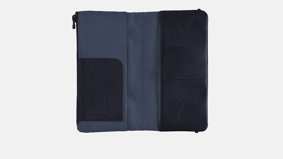 This cover design by B-Jirushi Yoshida is soft, light, and easy to wrap around your book and carry around, hence the name Sandwich. The exterior contains a zippered pouch for storing accessories, cords, and more. An elastic band helps secure the cover. The cover has a subtle shine and uses what is called 60/40 fabric, which is used in jackets and is durable and water-resistant.