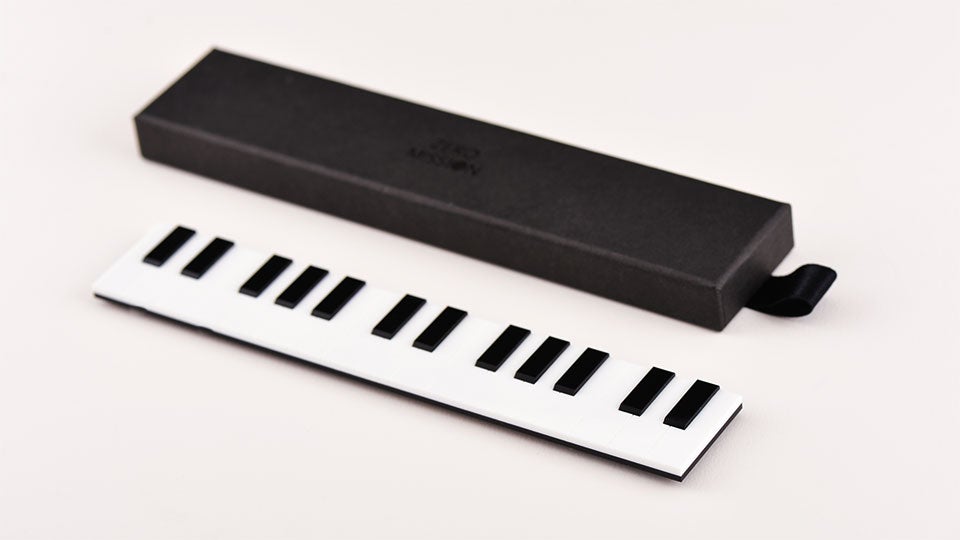 This 3D ruler is modeled after piano keys. While it does not contain labeled measurements in order to preserve the design’s theme, the ruler is 17 cm long with white keys split into 1 cm segments to allow you to use it as a measuring tool.