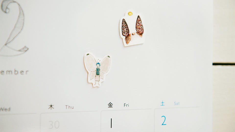 When purchased in the Hobonichi Store, the calendar comes with a special Memo Pit illustrated by Akira Minagawa. The Memo Pit is a reusable, double-sided adhesive strip that makes it easy to stick and unstick memos to various surfaces, turning any paper into a sticky note.