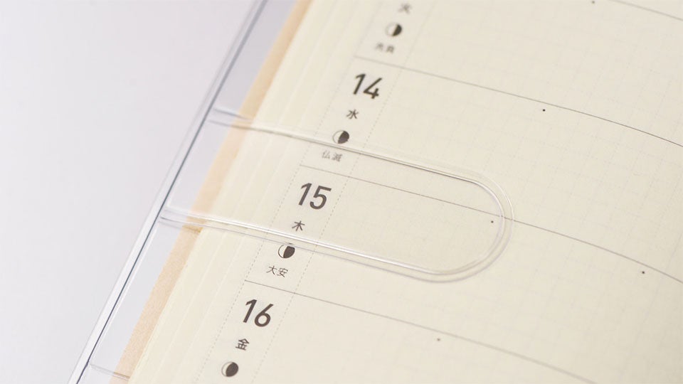 The Weeks Clear Cover is a protective, clear plastic covering that goes over your Hobonichi Techo Weeks. It protects your planner from wear and tear over the course of the year, and provides a sideways bookmark, a place to store your pen, and two card-size pockets. You can also slip some decorations in underneath the clear cover, such as family or travel pictures and other things that would cheer you up at a glance. The Clear Cover is a very popular add-on that many customers purchase in addition to their Weeks book for the full experience.