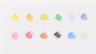 黄・橙(だいだい)・黄緑・緑・水色・紫・