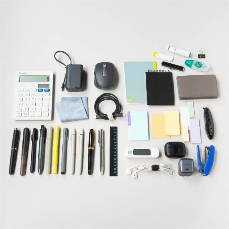 Stappo allows you to cleanly store all the things that end up scattered around your desk or table, such as stationery you use alongside your techo, make-up, accessories, and other small items. It’s great having one in your daily life so you can set it up as a pouch with designated storage spots for various items you use regularly.