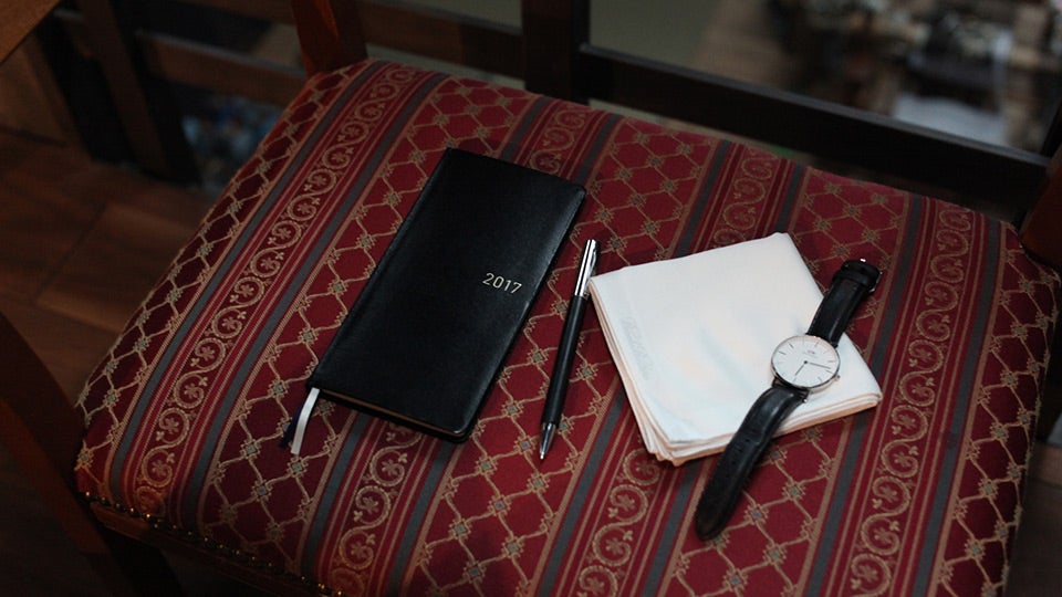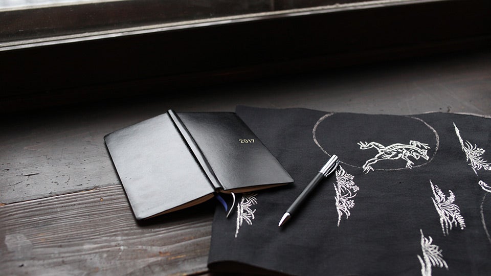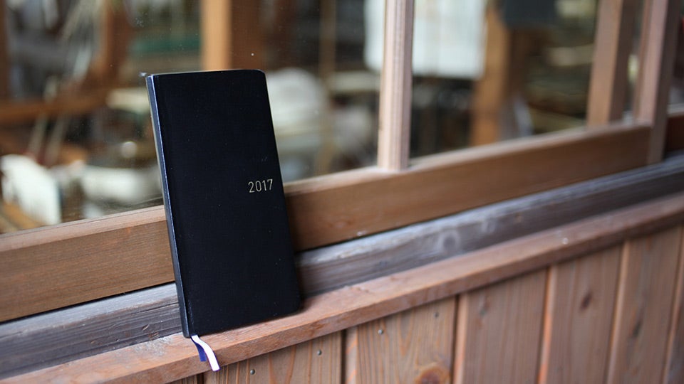 クラシカルな革張りの手帳に、