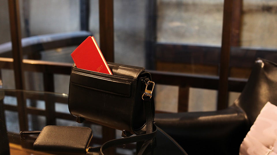 表紙にはヤギ革を使い、ツヤのある色合いと
