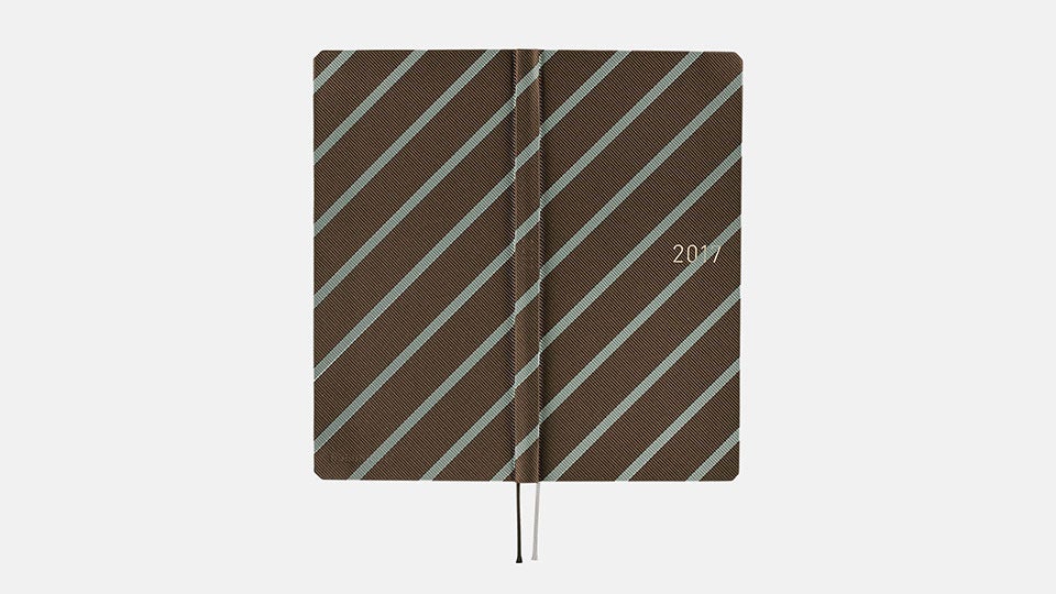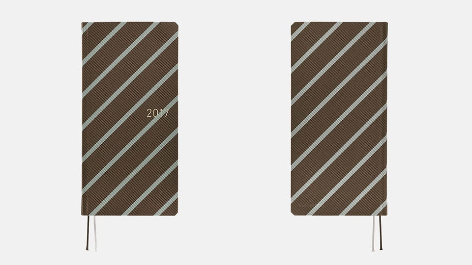 ベースの茶色に細い水色のラインが入り、