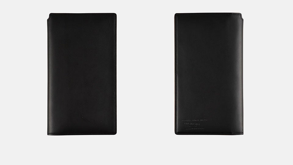 シックな黒革のカバーです。