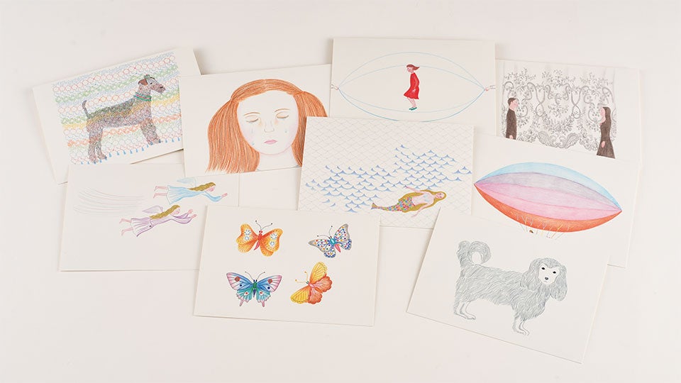 1枚1枚に、天使や人魚、犬やちょうちょ、