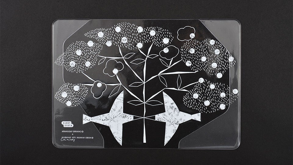 葉や鳥は、どこか幾何学模様のようにも見えます。