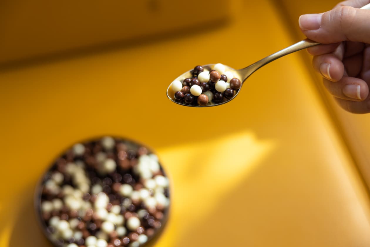 キャビアに見立てた粒状のチョコレートです。