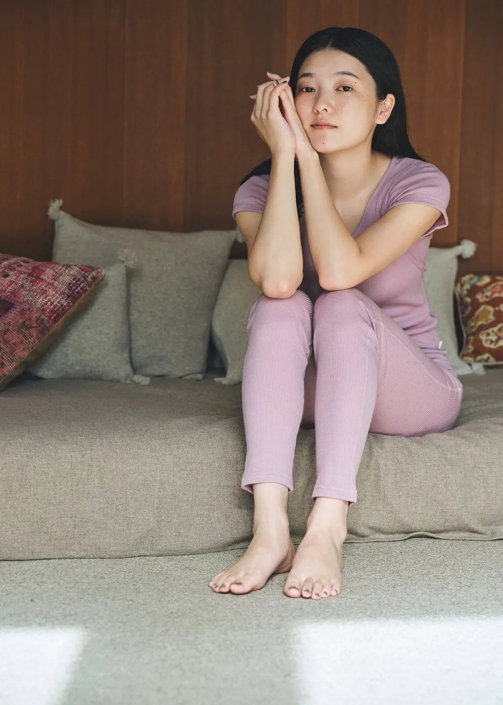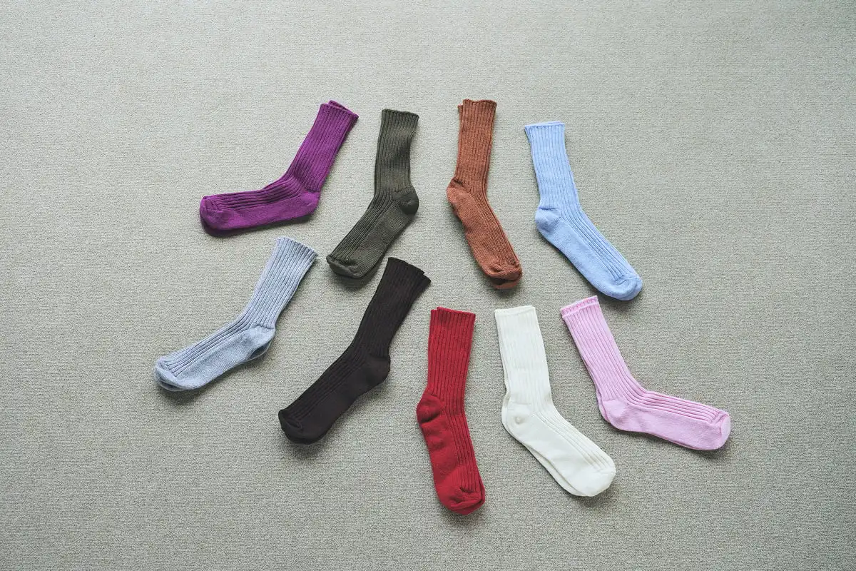 轟木 私は、はじめて購入したJOHAが靴下だったんです。 2017年くらいだったかな。 色や素材、当時読めなかったけど 「JOHA」という文字にも惹かれて。 次にインナーも買ってみたら着心地が好みで、 子供用からはじまったというストーリーも含めて 「好き」と思いました。 生地が杢調だったり、リブで陰影があったり、 表情がありますよね。 だから、チラッと見えたときも素敵で。
