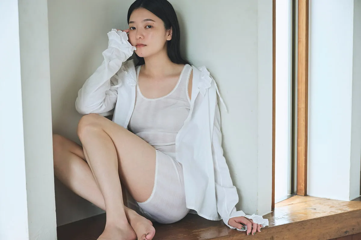 轟木 FILIPPAのアンダーシャツは、 可憐な白とレースがかわいいから 白いトップスと重ね着したり、 冬はベロアのボトムに合わせて、 ざっくりローゲージのゆったりした モヘアとかのニットを上から着たり。 デニムにも合うと思いますよ。 デニムのセットアップの胸元から、 ちらっとFILIPPAのレースが見えてもかわいい。