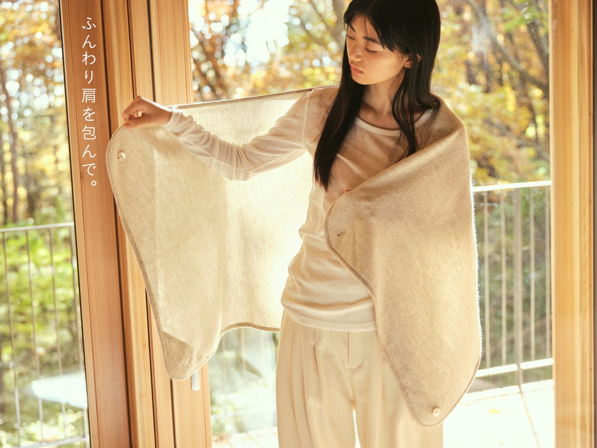 カシミヤ100%で、気持ちがよくて万能な一枚です。