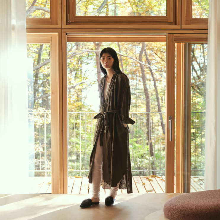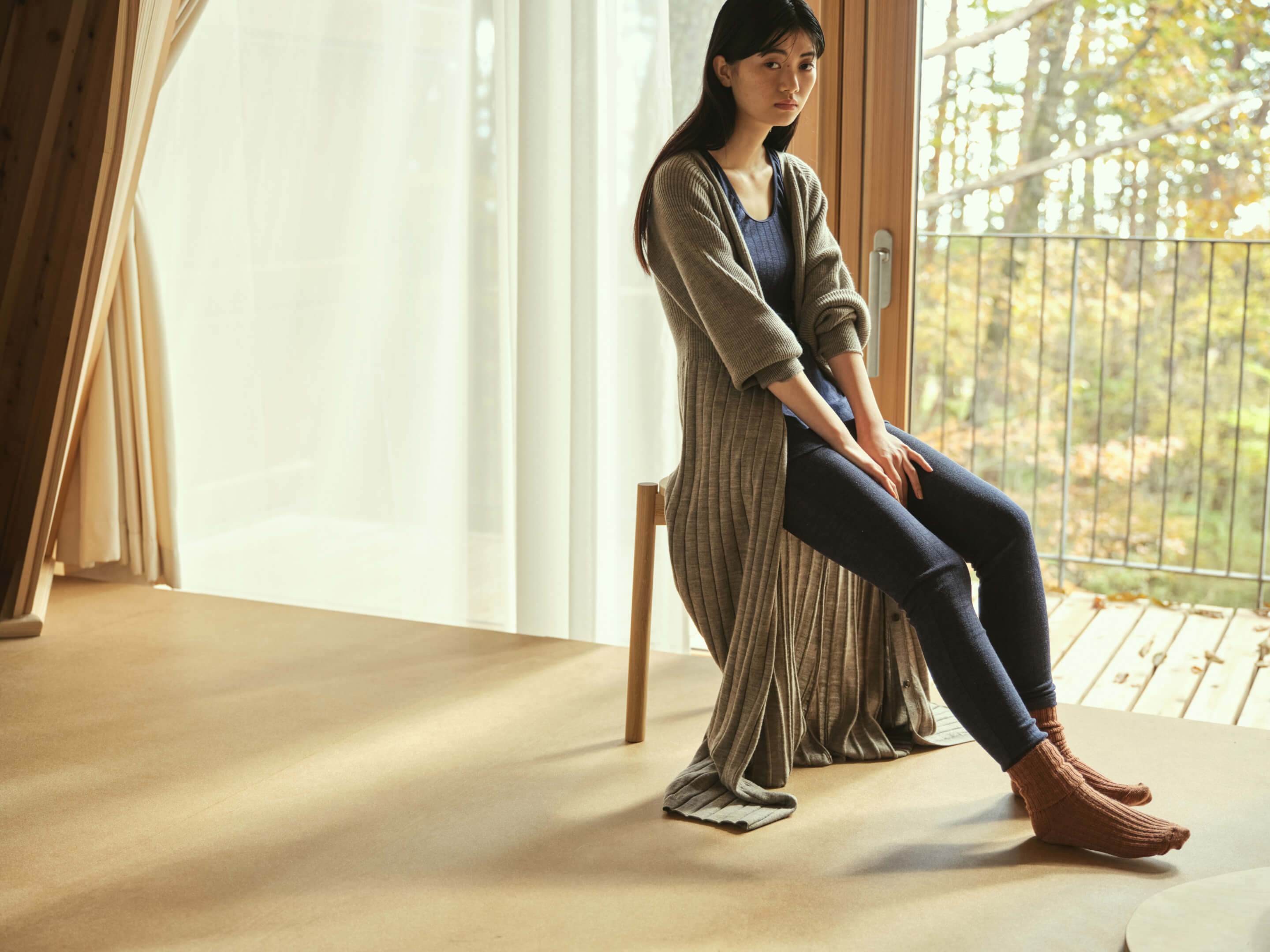 ワイドパンツやワンピースの重ね着にもぴったり。