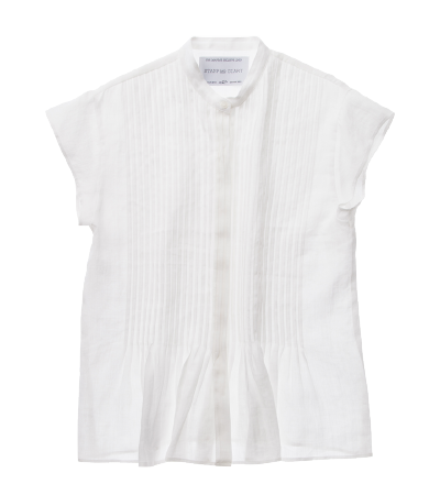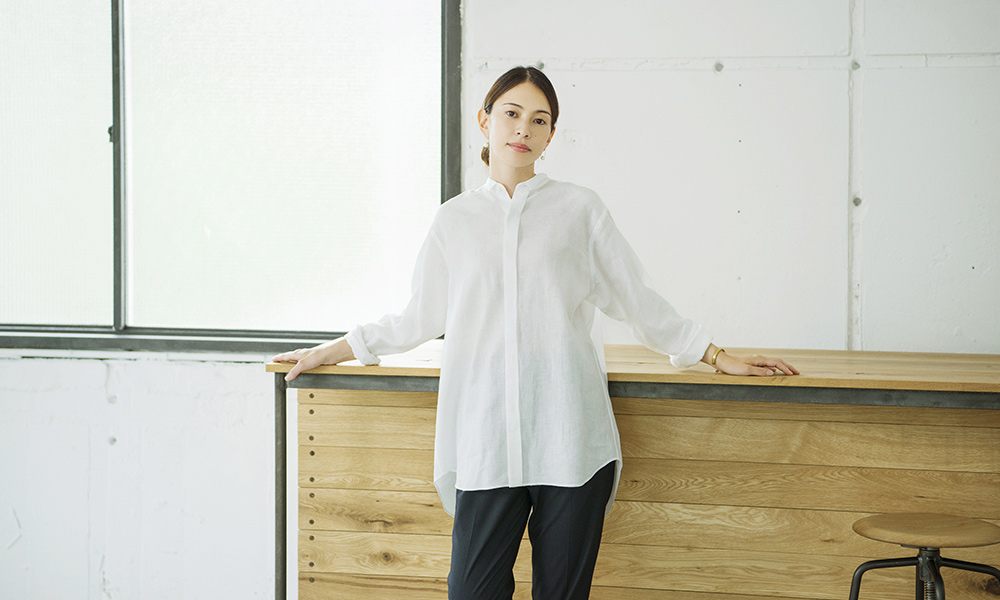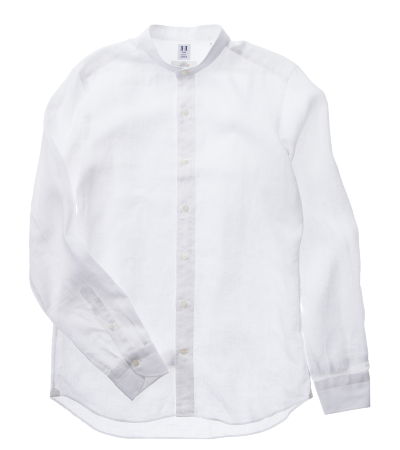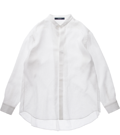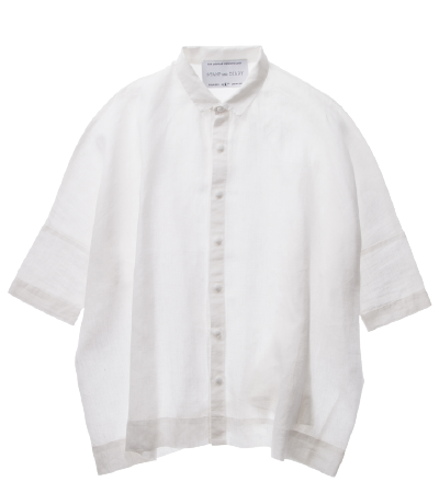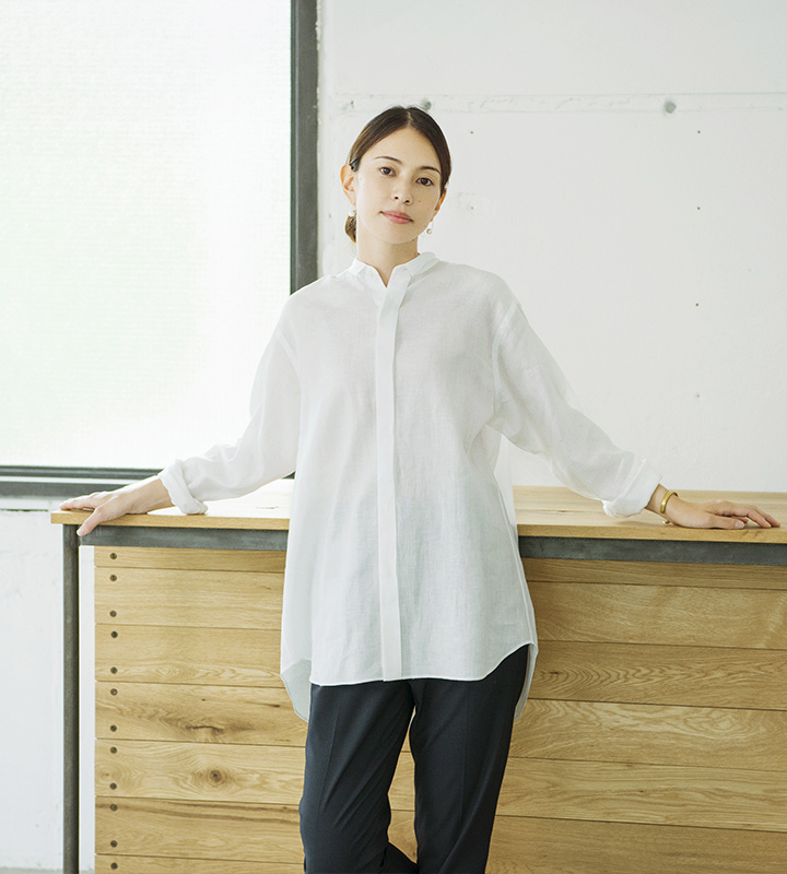 襟のないバンドカラーシャツはリネンでつくっています。