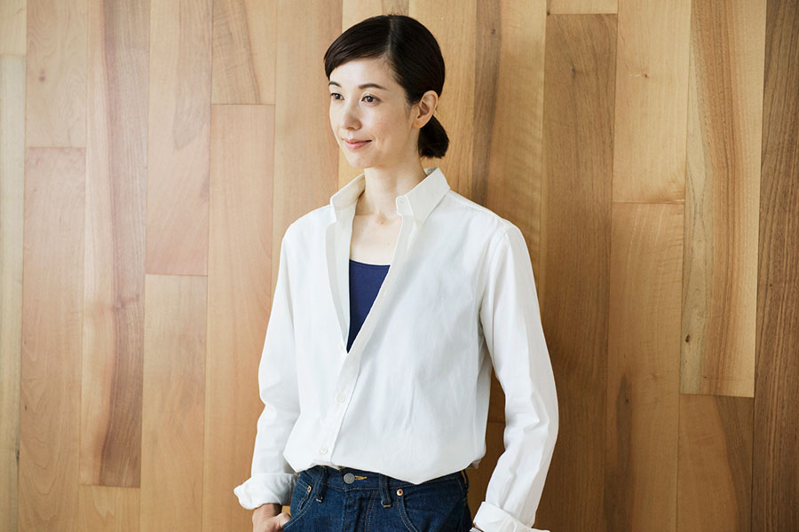 濃い色を着たほうが、白いシャツを上に着たとき、
