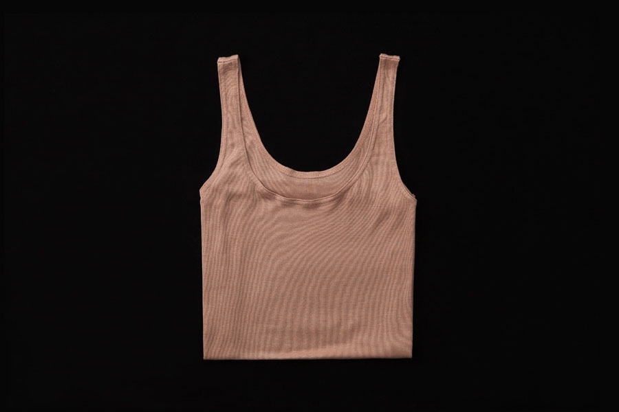 肩は、肌着の肩ひもがちょうど隠れるような太さで、
