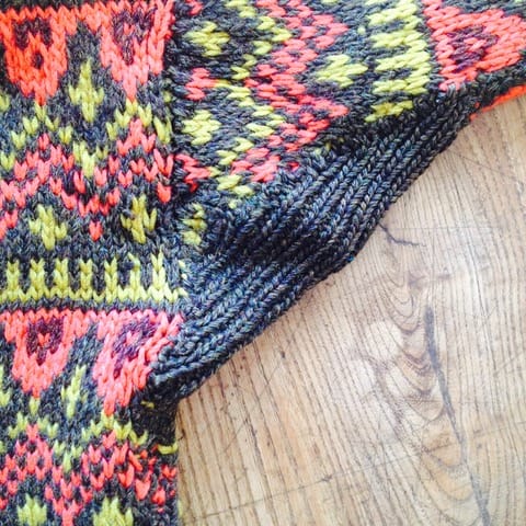 脇の下にリブ編みの「マチ」がはめ込まれています。