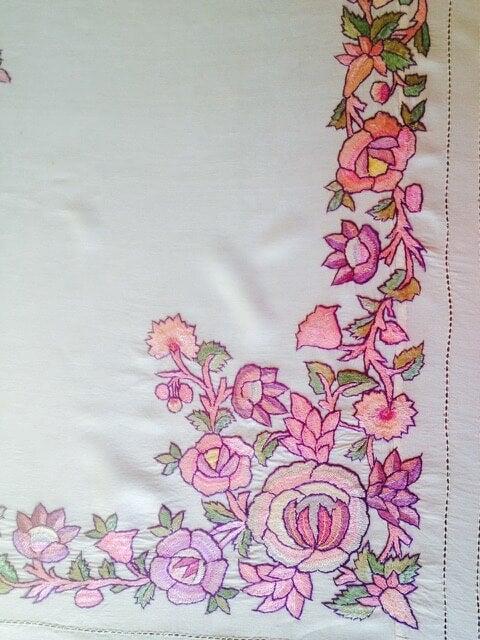 クロスの四辺に沿って、ぐるりと刺繍が巡らされています。