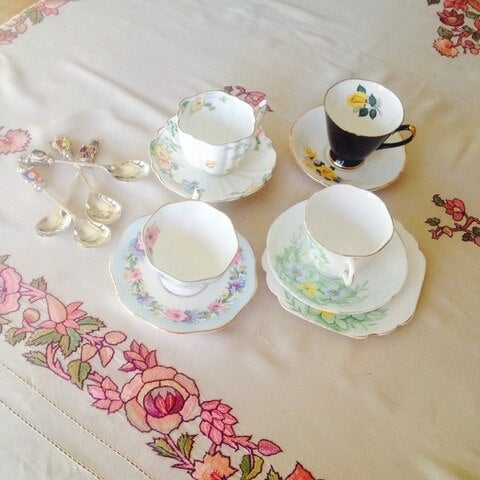 こんな素敵なテーブルクロスの上に朝食を並べたら‥‥。