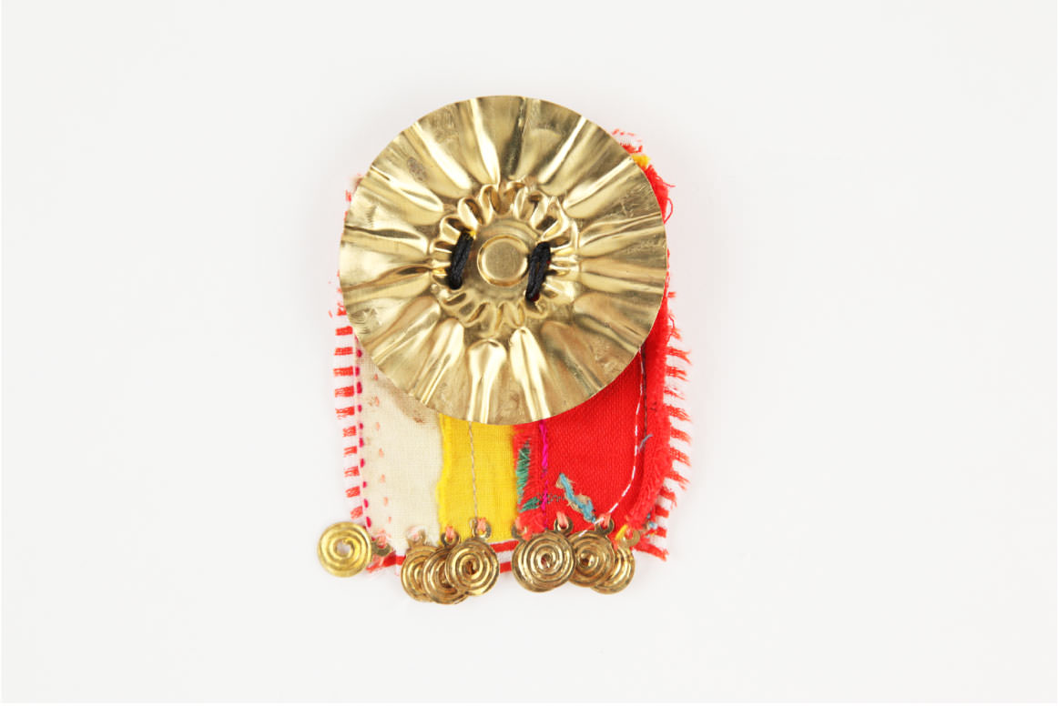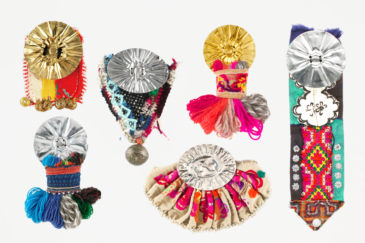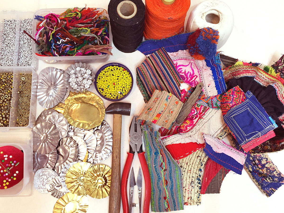 旅先で集めたお菓子用アルミカップをたたいてつぶして、