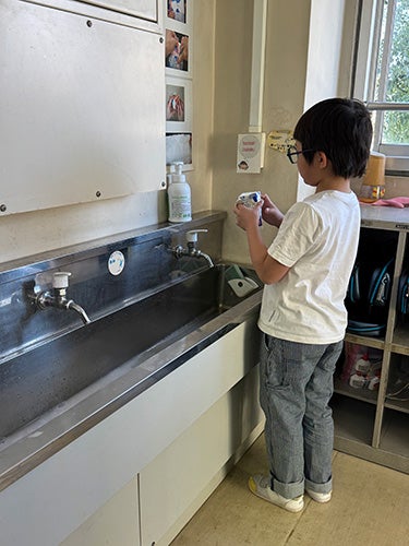 それはもう、洋服でちょいちょいって拭くか、 というか、手を洗ってくれるなら、 なにしろ、まずもって 学校でも 給食の前に手を洗うなんて習慣もありません。 ですから、学校の持ち物にも 学校で子どもたちを見ると、