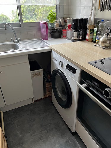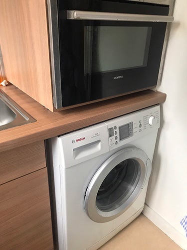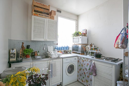 毎日のようにお世話になる洗濯機。 フランスでは意外な場所、 キッチンにあることが多いんだよ!