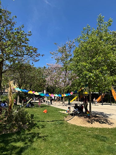 ▲春真っ盛りのパリは暑くなったり急に涼しくなったり。 半袖だった先週からはうってかわって今週は上着が欠かせない1週間になりそうですが、 あおい空と青々とした木々でハッピーになる季節のパリです。