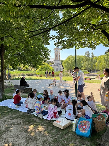 ▲フランスの年度末にあたるこの時期、毎週のように開催されるお誕生日会。 暖かくなるこの季節、公園でのピクニックパーティーもとっても多く、 どこの公園に行っても誕生会を見かけます。