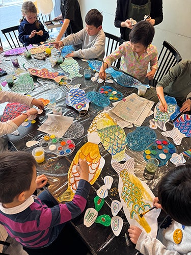 ▲子どもアトリエを開催しているプロフェッショナルな友人に依頼して、 日本の5月のこどもの日にちなんで『鯉のぼりアトリエ』。 みんな素敵な鯉のぼりができました♪