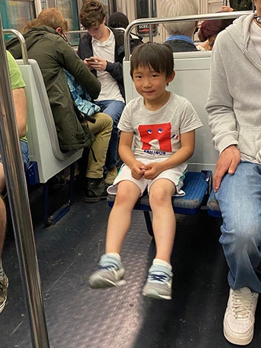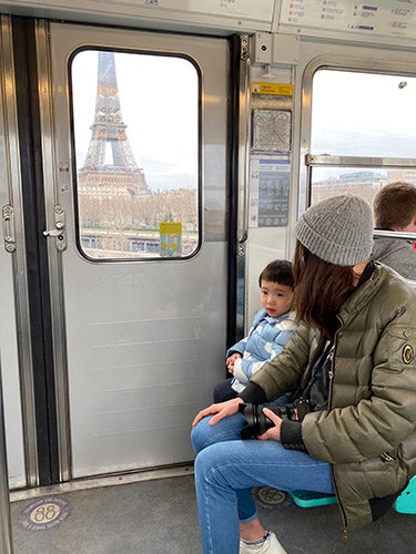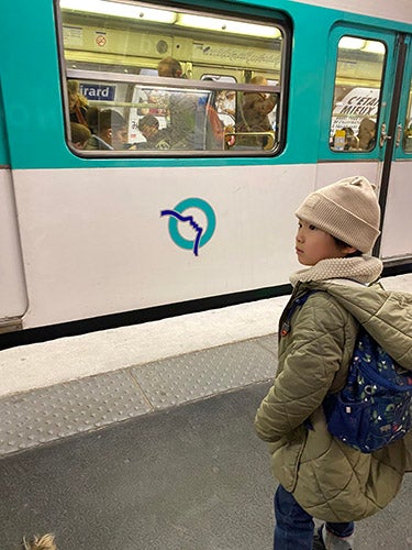 ![]() ▲こんな風に子どもだけを空いた席に座らせると、 親子で一緒に座れるようにとお隣の人が私にまで席を譲ってくれることも多いパリ。