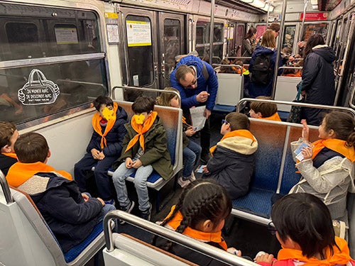 もちろん、まずは妊婦さん、お年寄り、 ![]() パリでよく見かける遠足風景。 こんなときもできる限り子どもに座らせようとするし、それに慣れてしまっている子どもたちが 我先にと空いた席に突進するのも、おフランスあるあるです(汗)。