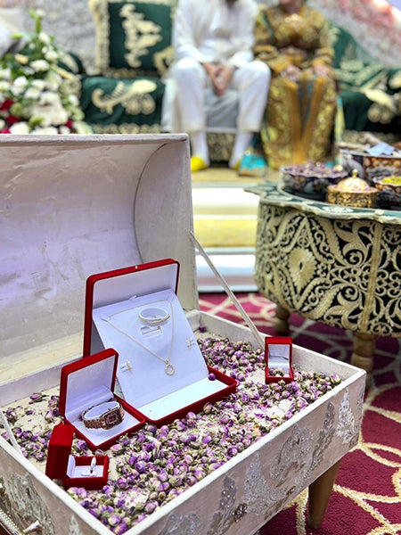 モロッコでは花婿さんの家庭が、 その中身は、結婚指輪、ネックレス、 それで『明日は貢ぎ物を持っていく