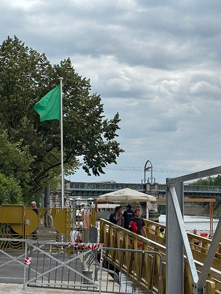水質は毎日検査されて、会場に掲げられる旗の色で 7月5日、オープン初日は