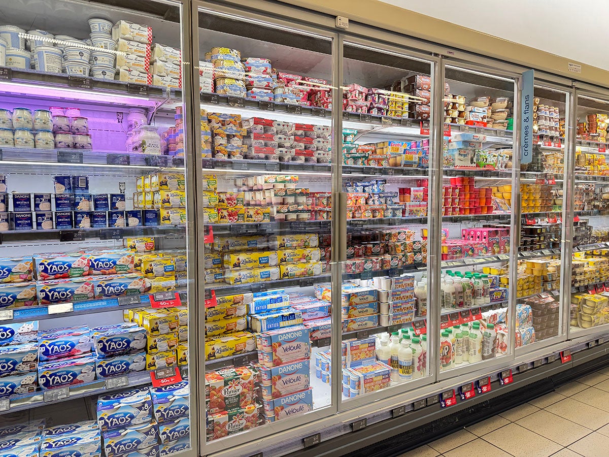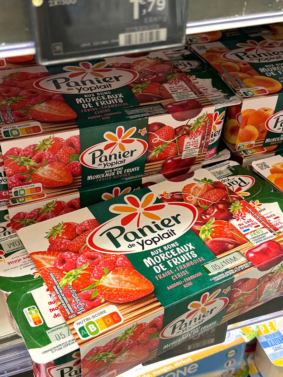 フランスのスーパーのヨーグルト売り場。 フルーツ味がやっぱりメジャー。